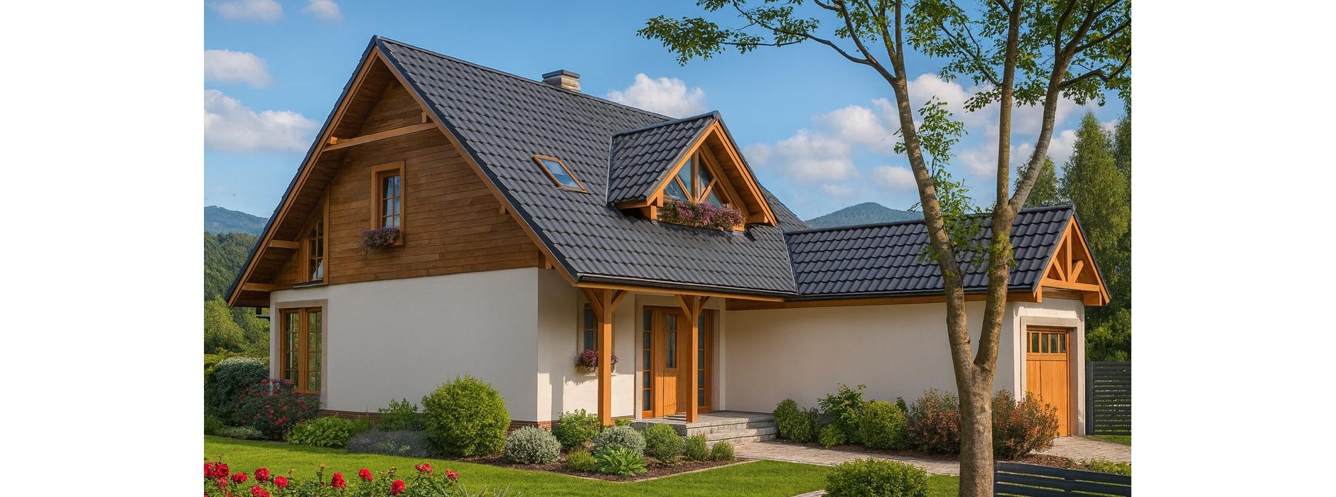 Projekt A-101 „DOM KARSKA” to doskonała propozycja dla osób marzących o kameralnym domu parterowym z poddaszem mieszkalnym, który harmonijnie łączy tradycyjny styl z praktycznym układem wnętrz. Dzięki zwartej bryle i odpowiednio dobranemu dachowi projekt został stworzony z myślą o działkach o niewielkiej szerokości, gdzie liczy się każdy metr przestrzeni.
