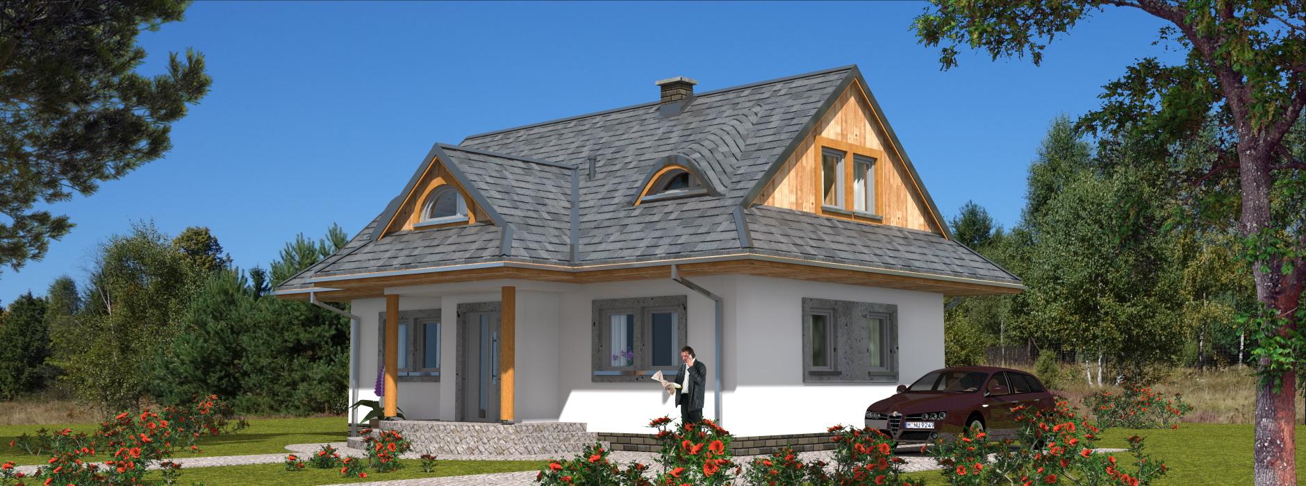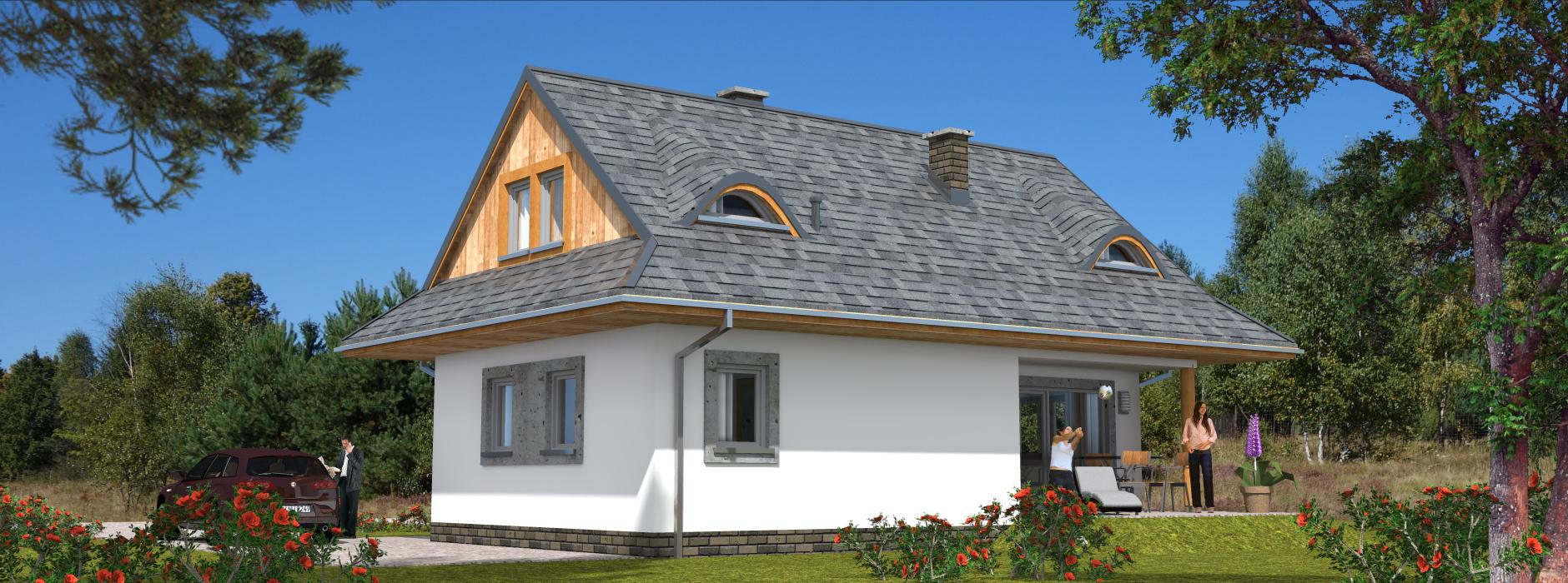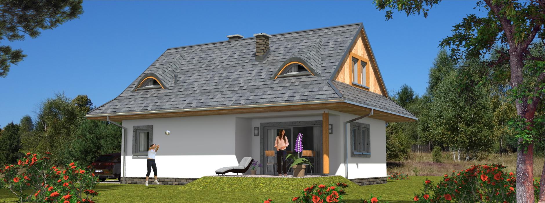 Projekt domu A-102 „DOM WRONIA” – tradycyjny dom parterowy z poddaszem i czterema sypialniami
