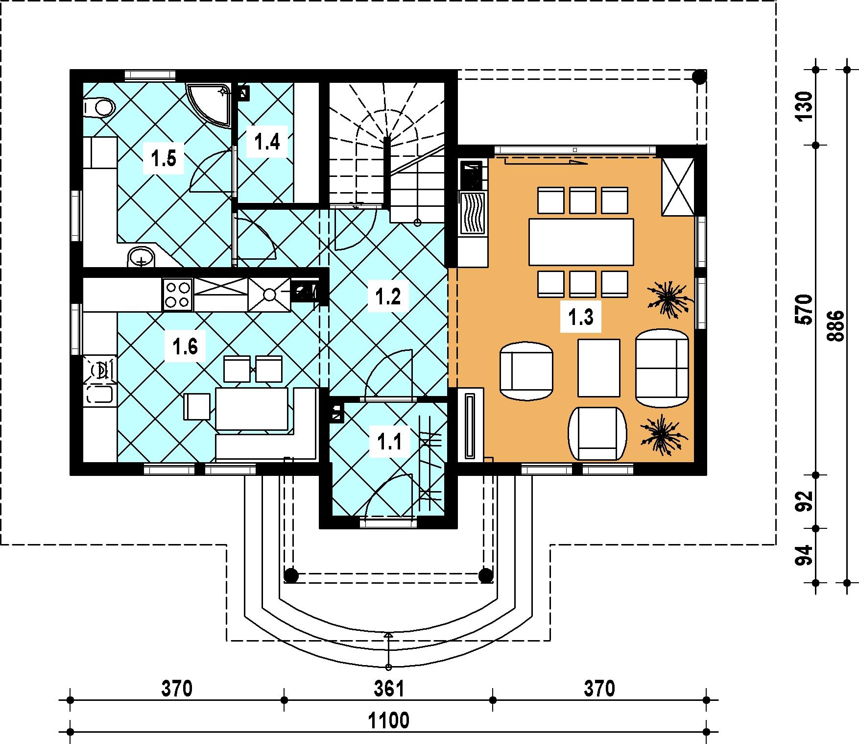 | 1.6 | kuchnia z jadalnią | 12.70 m2 | 12.70 m2 |