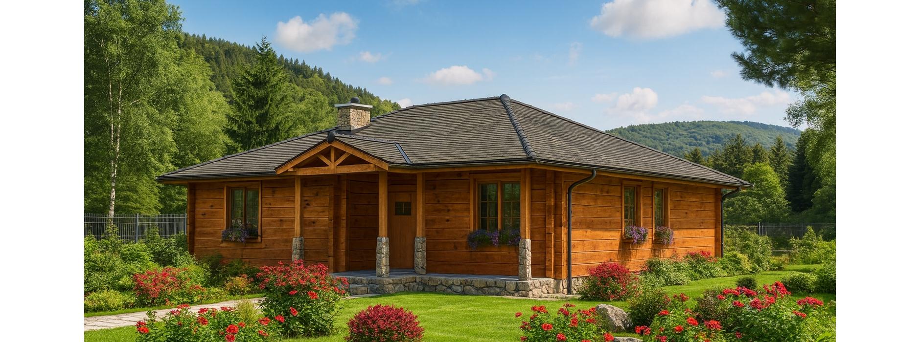 Dom z bali A-104 „DOM POZIOMKOWA” to projekt dla osób, które marzą o kameralnym, funkcjonalnym i zdrowym domu parterowym. To połączenie stylu tradycyjnego z ekologicznymi materiałami i wygodą użytkowania.