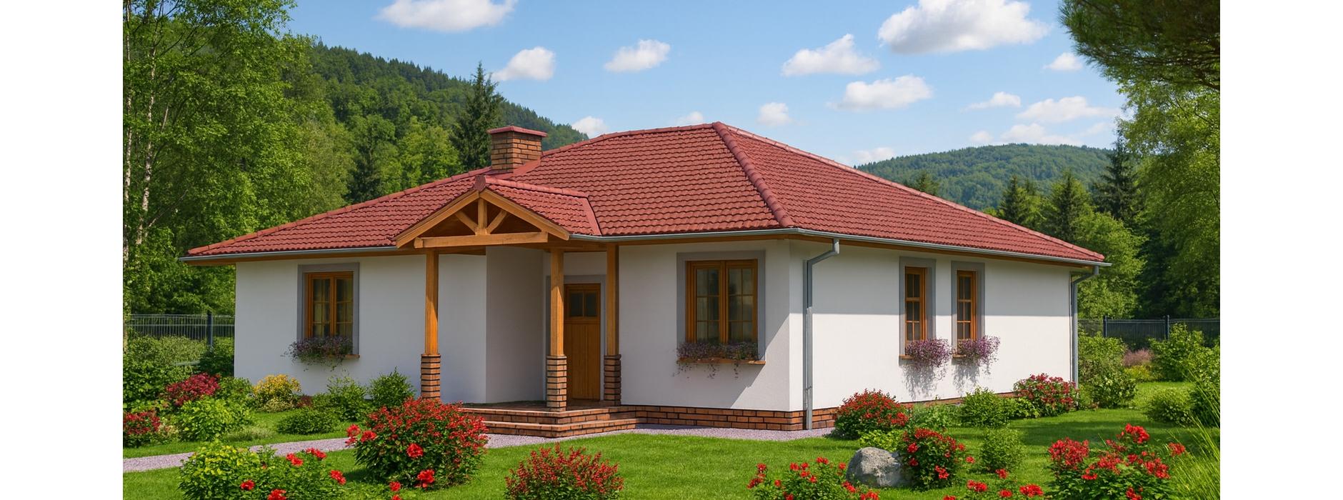 Projekt domu szkieletowego A-104 „DOM POZIOMKOWA” – funkcjonalny i energooszczędny dom parterowy