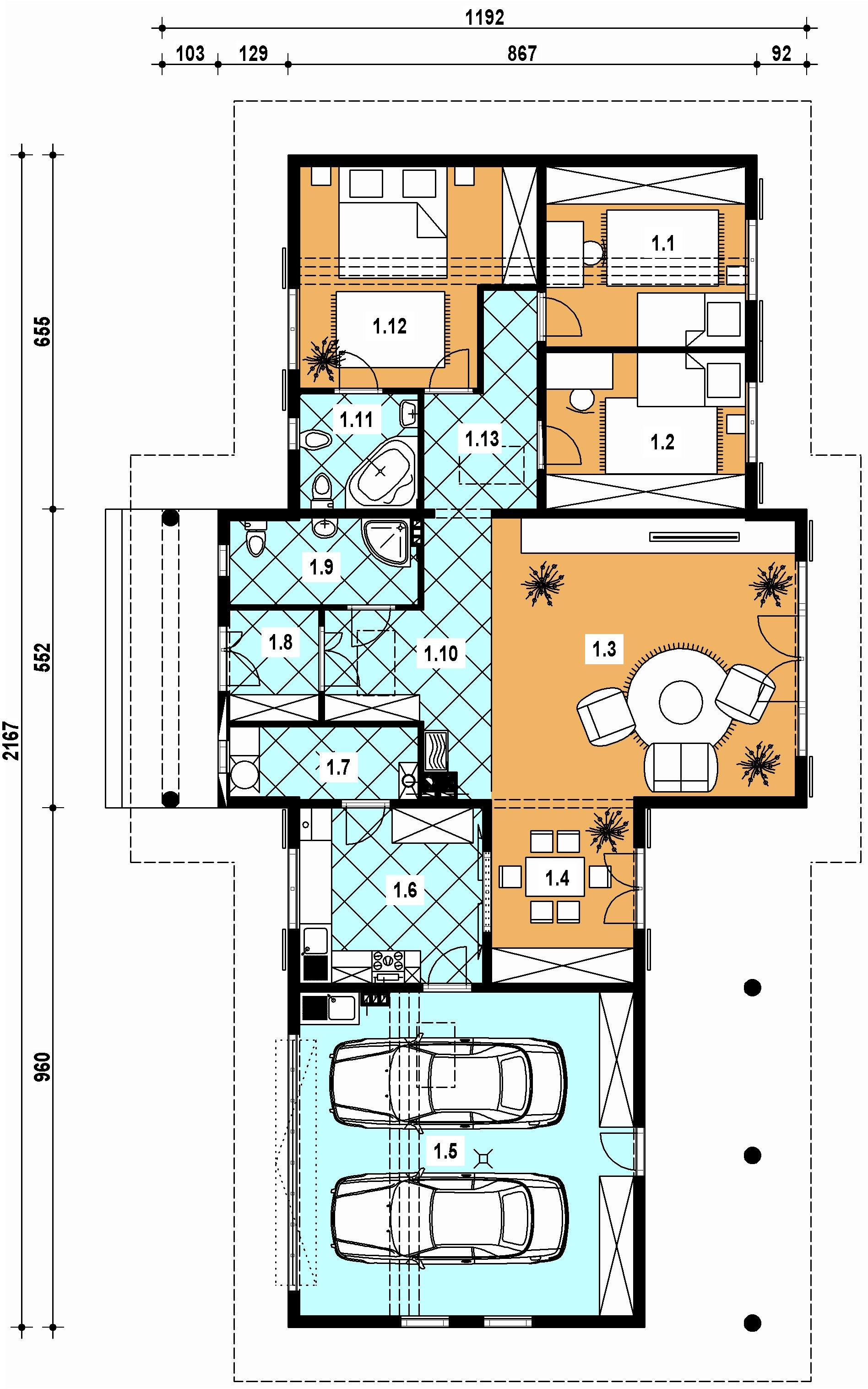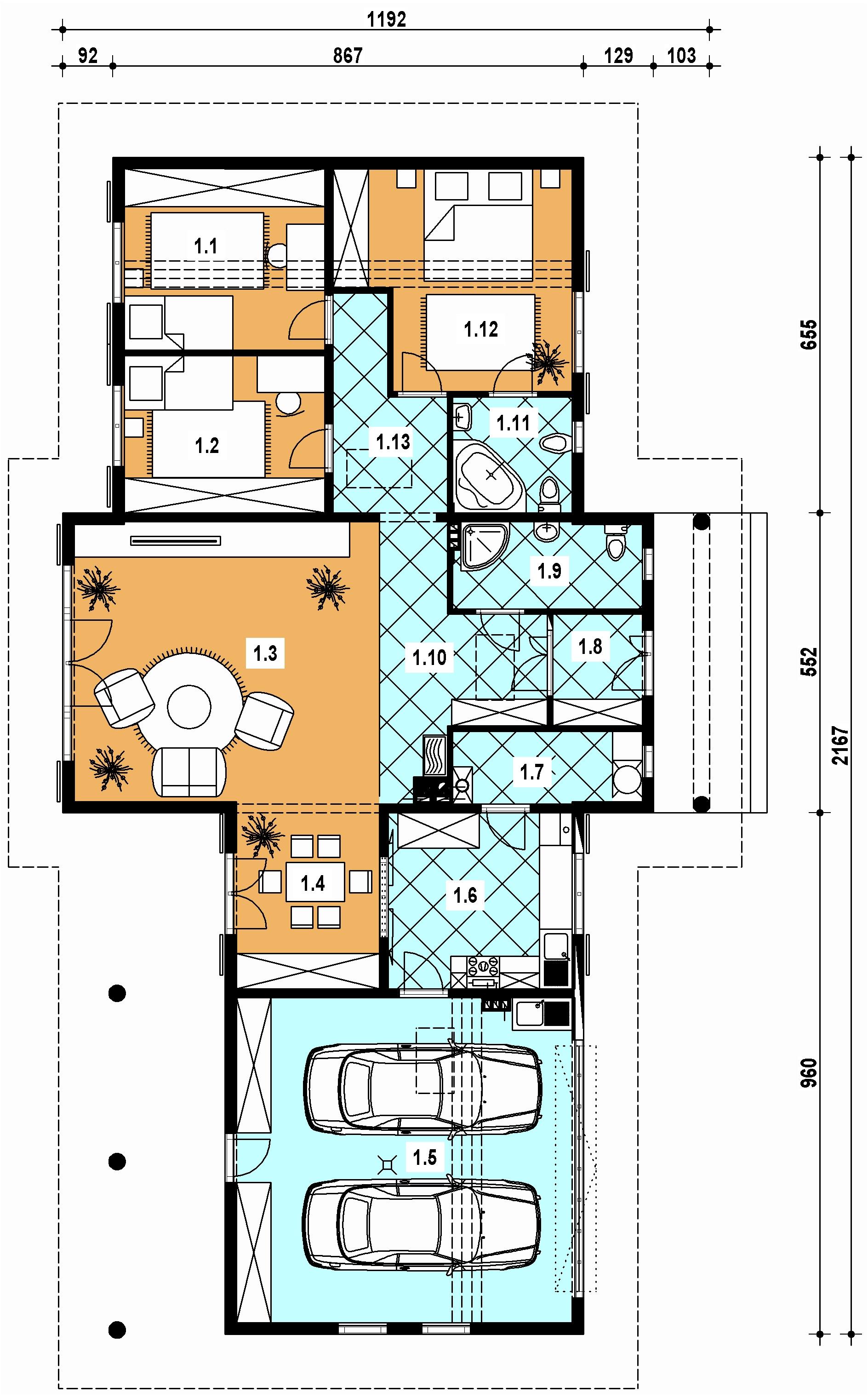 - garaż dwustanowiskowy z wejściem bezpośrednio do domu.
