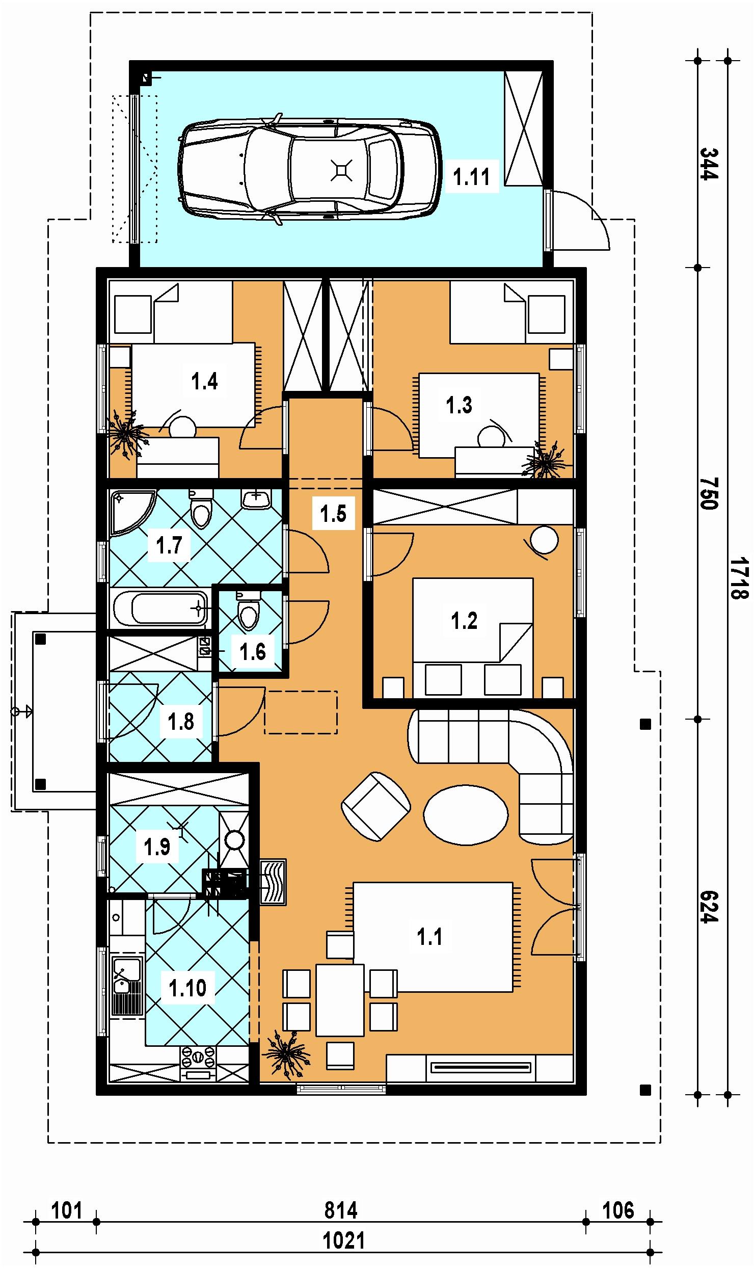 Projekt dedykowany jest działkom z wejściem od północy, co umożliwia maksymalne wykorzystanie naturalnego światła w części dziennej.