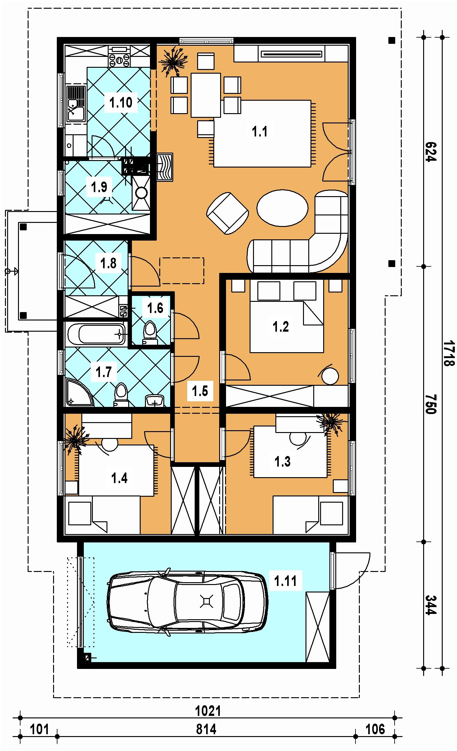 - prostokątny rzut gwarantujący ekonomię budowy,