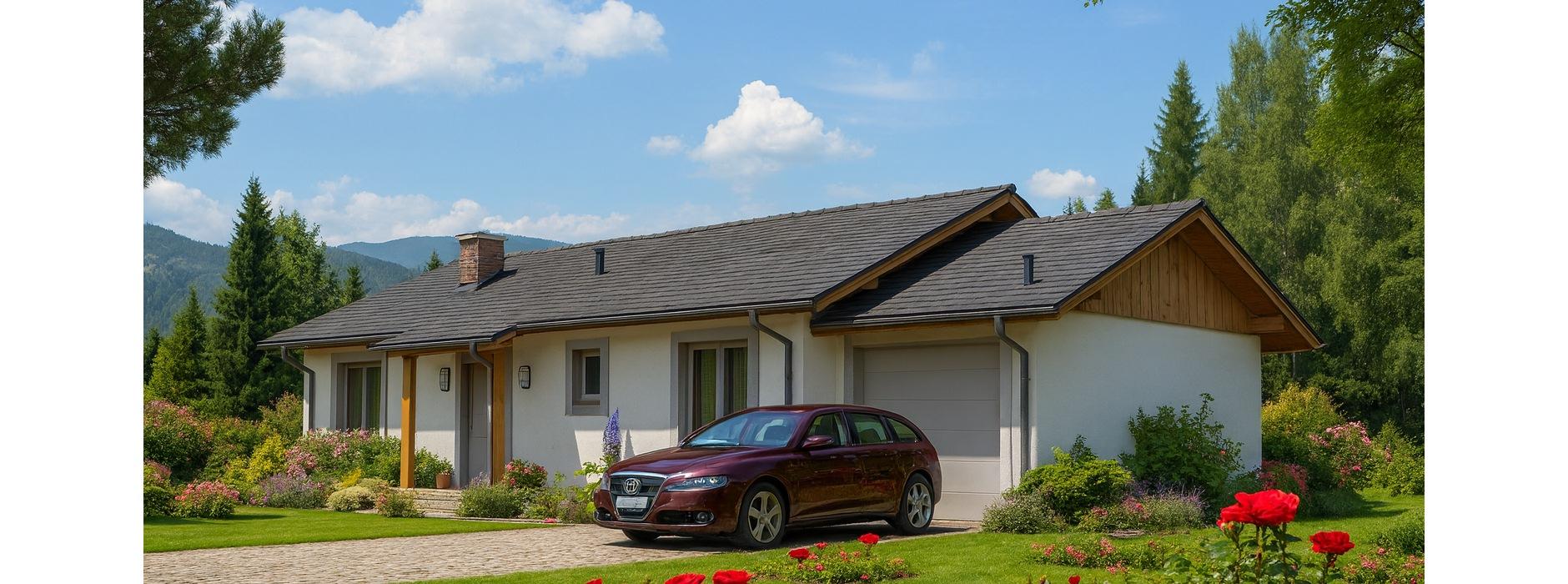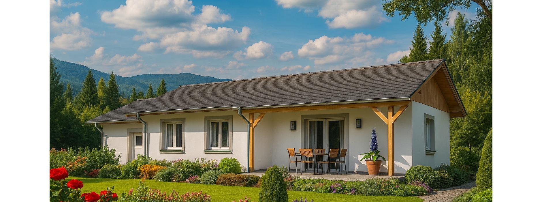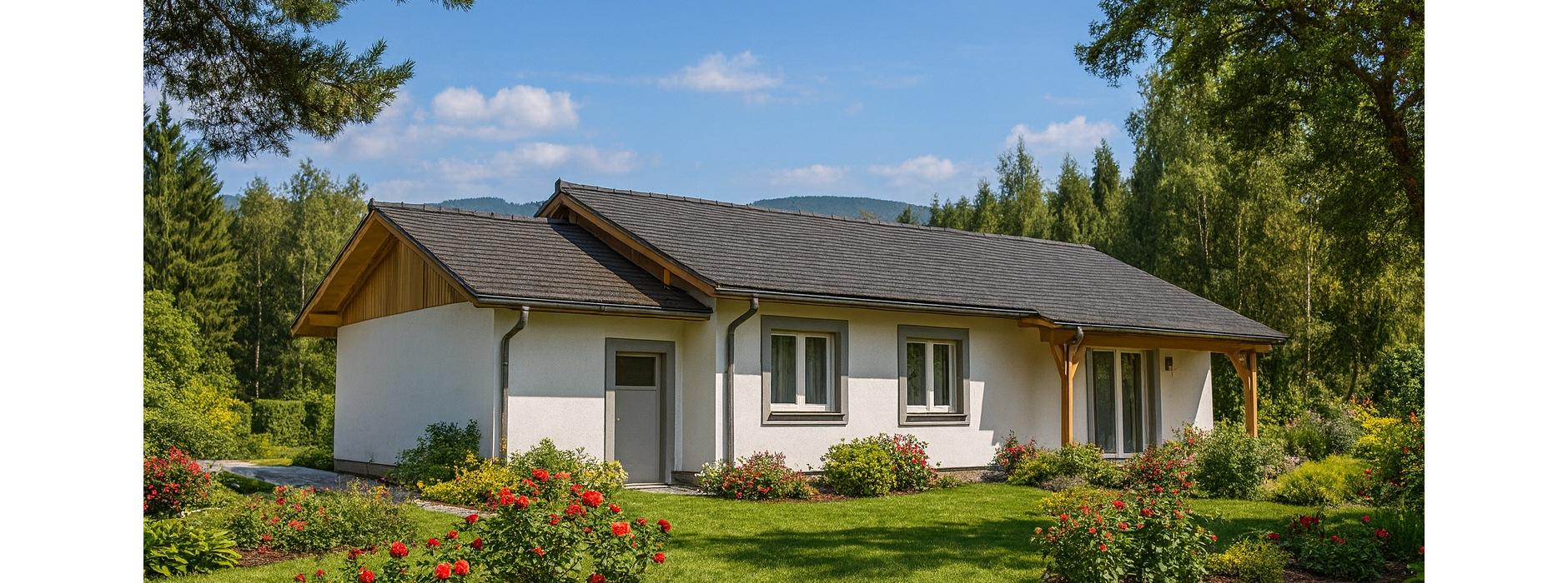Projekt domu szkieletowego A-108 „DOM CHMIELOWA” – nowoczesny i energooszczędny dom parterowy.
