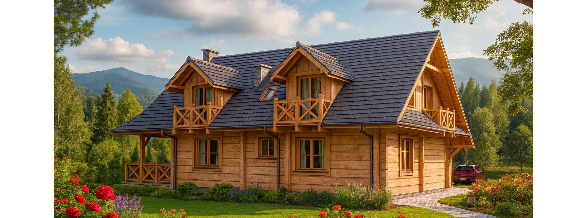 Projekt domu z bali A-124 „DOM GRABOWA” – naturalny klimat i góralska tradycja.