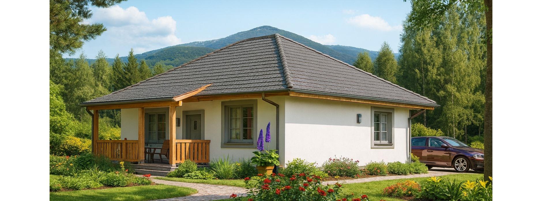Projekt domu szkieletowego A-126 „DOM LILIOWA” to doskonała propozycja dla osób szukających niewielkiego, taniego i funkcjonalnego domu jednorodzinnego. Idealny zarówno jako dom całoroczny, jak i dom letniskowy – ekonomiczny, wygodny i przyjazny w użytkowaniu.