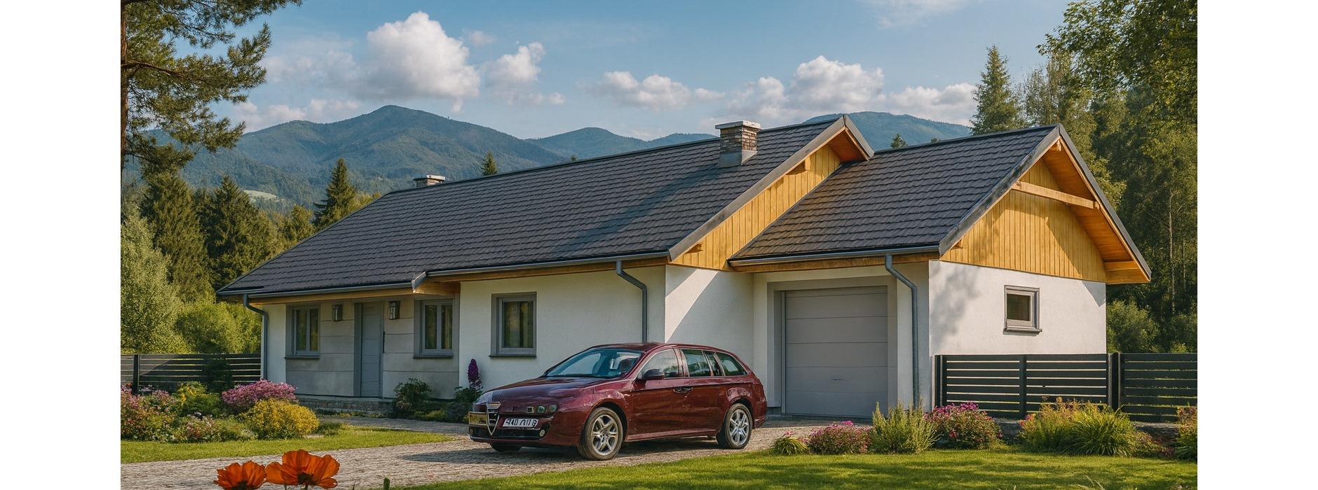 Parterowy dom jednorodzinny szkieletowy – 4 pokoje, kuchnia, garaż Ten dom szkieletowy parterowy z 4 pokojami to propozycja dla osób szukających szybkiej budowy i ekonomicznej eksploatacji. Budynek jest niepodpiwniczony, co pozwala na łatwe dostosowanie do indywidualnych potrzeb inwestora. Układ funkcjonalny 4 pokoje, w tym przestronny pokój dzienny z miejscem na wypoczynek i kominek, Kuchnia z jadalnią, która sprzyja codziennemu gotowaniu i rodzinnym posiłkom, Garaż, który może służyć także jako dodatkowe miejsce do przechowywania narzędzi czy sprzętu sportowego, Jasne i przestronne wnętrza dzięki dużym przeszkleniom. Zalety technologii szkieletowej Szybki czas budowy i niskie koszty inwestycji, Lekka konstrukcja umożliwiająca łatwe adaptacje wnętrza, Wysoka efektywność energetyczna – niższe rachunki za ogrzewanie, Styl nowoczesny lub góralski z możliwością dużych przeszkleń i wyjścia na taras. Dodatkowe informacje Budynek nadaje się do całorocznego użytkowania lub jako dom letniskowy, Możliwość indywidualnej aranżacji wnętrza i wykorzystania garażu jako dodatkowej przestrzeni funkcjonalnej, Ekonomiczny i przyjazny dla rodziny dom, który łączy komfort z nowoczesną technologią.