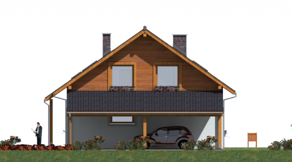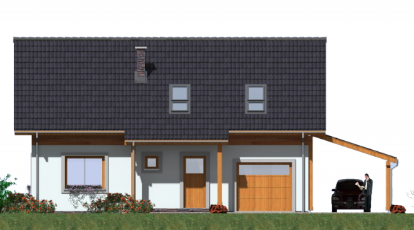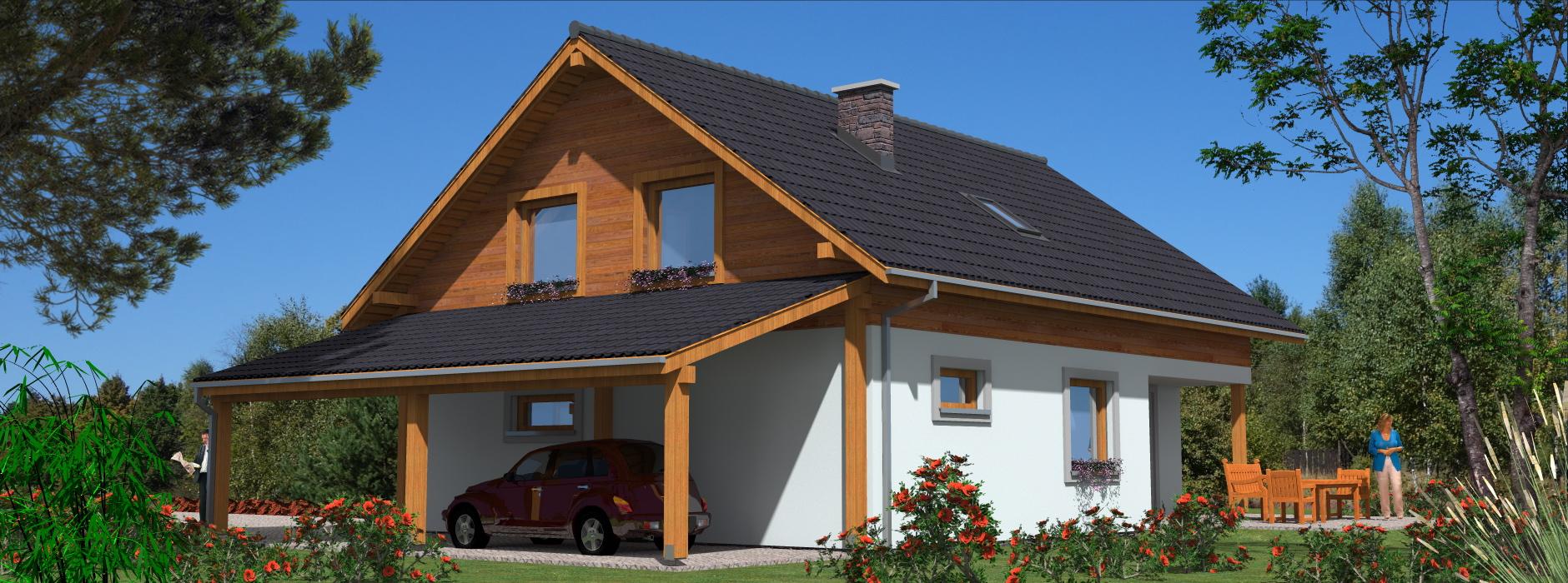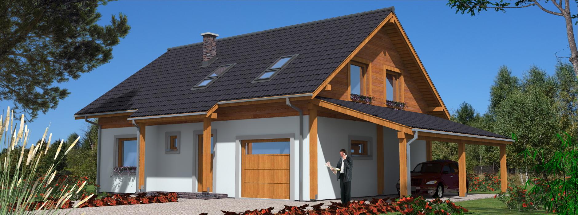Ten parterowy dom szkieletowy z poddaszem użytkowym łączy funkcjonalność i nowoczesną technologię z przyjaznym, rodzinnym charakterem. Budynek jest niepodpiwniczony, co sprawia, że realizacja jest szybka i ekonomiczna. Układ wnętrza 4 pokoje, w tym przestronny pokój dzienny z kominkiem oraz trzy wygodne sypialnie, Kuchnia z aneksem jadalnym, umożliwiająca wygodne przygotowywanie posiłków i codzienną organizację życia domowego, Garaż i wiata do parkowania samochodów i przechowywania sprzętu, Poddasze użytkowe może służyć jako strefa nocna lub dodatkowa powierzchnia do pracy, hobby czy gościnna. Zalety technologii szkieletowej Szybki czas budowy i niższe koszty inwestycji, Lekka konstrukcja umożliwiająca łatwe dostosowanie wnętrza do potrzeb rodziny, Doskonała izolacja termiczna i akustyczna, co czyni dom komfortowym i energooszczędnym, Styl góralski lub nowoczesny, z możliwością dużych przeszkleń i tarasu, sprzyjających naturalnemu doświetleniu i kontaktowi z otoczeniem. Dodatkowe informacje Budynek może być użytkowany całorocznie lub sezonowo jako dom letniskowy, Ekonomiczne użytkowanie i niski koszt eksploatacji dzięki nowoczesnym materiałom i technologii szkieletowej, Możliwość indywidualnej aranżacji wnętrza i dodatkowych przestrzeni na poddaszu.