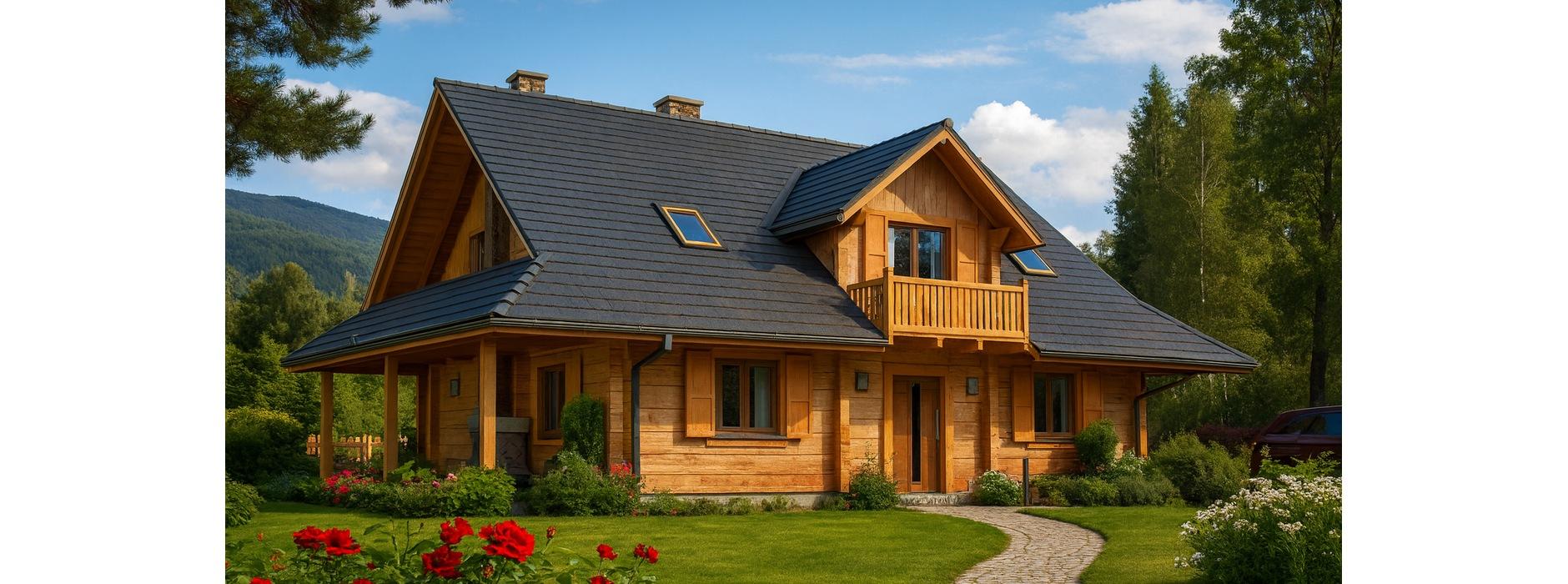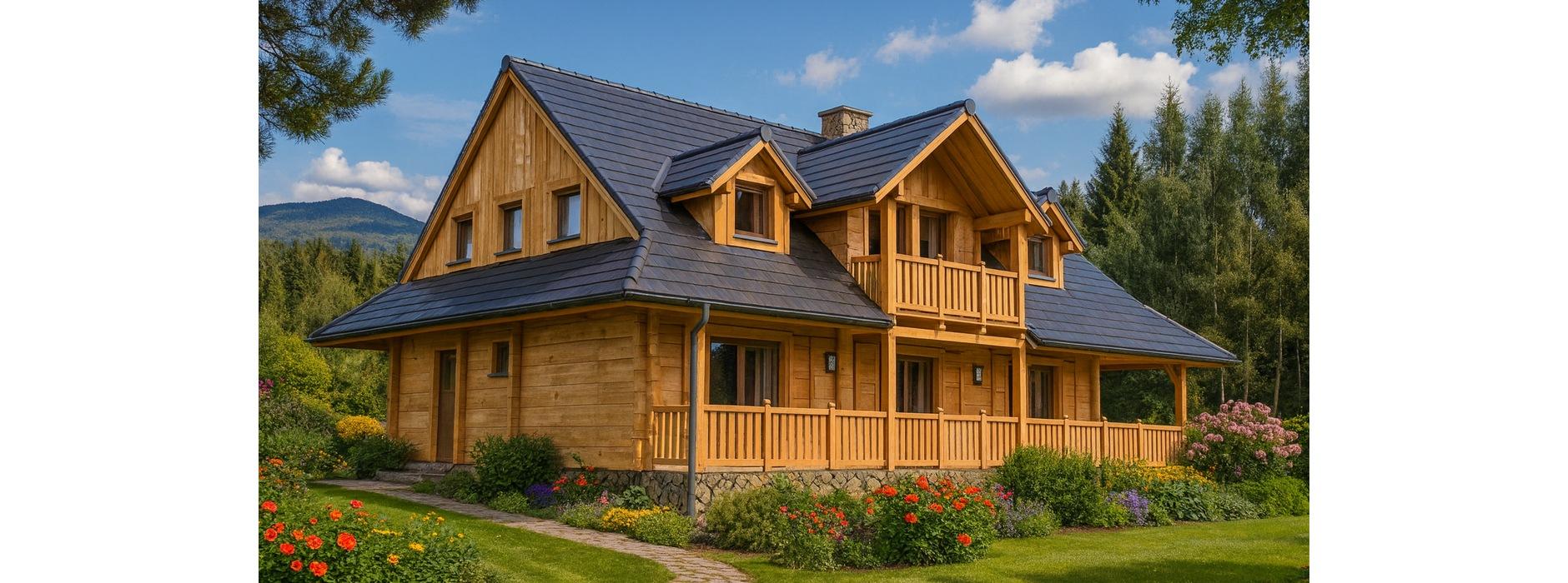 Ten parterowy dom jednorodzinny z poddaszem użytkowym został zaprojektowany w technologii z bala, co nadaje mu naturalny charakter i przytulny klimat. Budynek jest częściowo podpiwniczony, co umożliwia dodatkowe miejsce na pomieszczenia gospodarcze lub przechowywanie sprzętów domowych. Układ funkcjonalny Dom posiada 5 pokoi, idealnych dla rodziny z dziećmi lub osób potrzebujących dodatkowej przestrzeni na gabinet, pokój gościnny czy pracownię, Kuchnia została zaprojektowana tak, aby była funkcjonalna i połączona z częścią dzienną, Parter domu stanowi strefę dzienną, w której znajduje się przestronny pokój dzienny z możliwością ustawienia kominka, Poddasze pełni funkcję strefy nocnej, z pokojami do wypoczynku i prywatności mieszkańców. Zalety technologii z bala Naturalny mikroklimat wewnątrz domu, Doskonała izolacja termiczna, Ciepły, przyjazny dom o wysokim komforcie użytkowania, Estetyczny wygląd elewacji i wnętrza, idealny do wkomponowania w otoczenie naturalne. Dodatkowe informacje Dom może być użytkowany całorocznie lub okresowo jako dom letniskowy, Taras i duże przeszklenia w pokojach dziennych zwiększają kontakt z otoczeniem, Możliwość indywidualnej aranżacji piwnicy i poddasza według potrzeb inwestora.