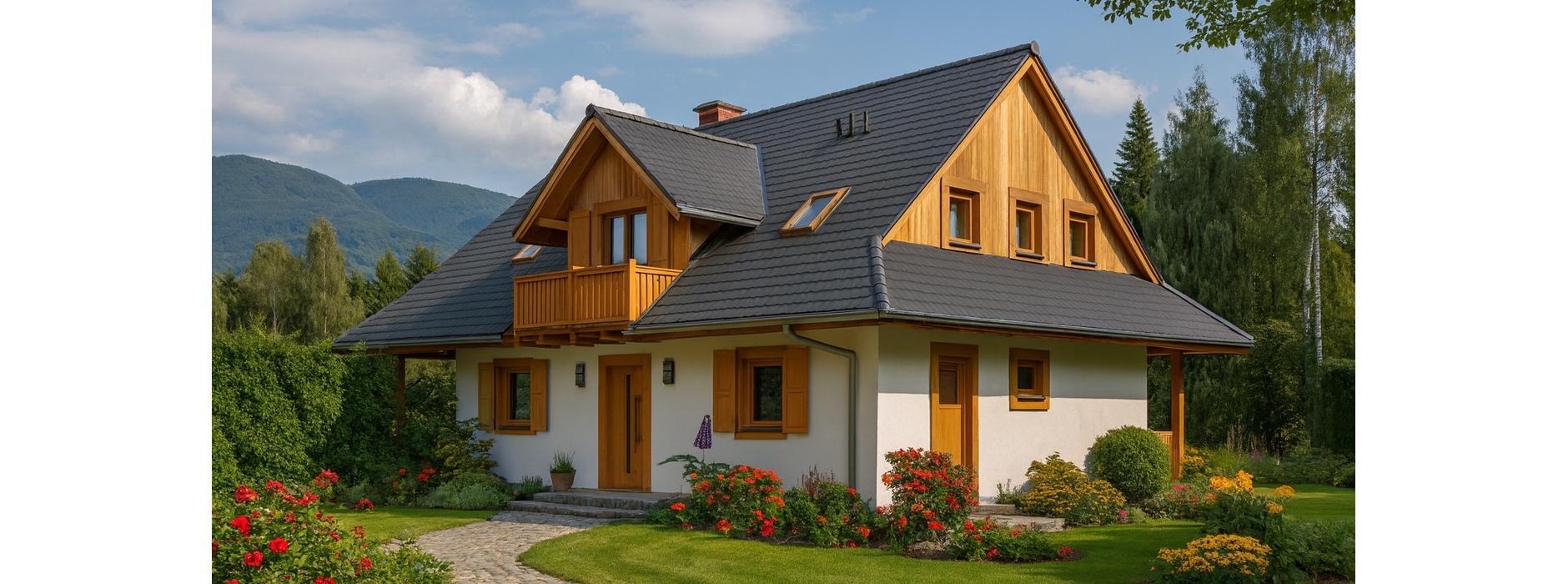 Ten parterowy dom szkieletowy z poddaszem użytkowym to propozycja dla osób ceniących nowoczesną i szybką budowę, przy zachowaniu wysokiej funkcjonalności. Budynek jest częściowo podpiwniczony, co daje dodatkowe miejsce na kotłownię, pralnię lub pomieszczenia gospodarcze. Układ wnętrza Dom posiada 5 pokoi, co zapewnia komfort mieszkania dla rodziny lub możliwość przeznaczenia niektórych pomieszczeń na biuro lub pokój gościnny, Kuchnia z aneksem jadalnym została zaprojektowana z myślą o wygodzie użytkowników i optymalnym zagospodarowaniu przestrzeni, Parter stanowi strefę dzienną, w której znajduje się przestronny pokój dzienny, z możliwością ustawienia kominka dla dodatkowego ciepła, Poddasze pełni funkcję strefy nocnej, zapewniając mieszkańcom prywatność i wygodę. Zalety technologii szkieletowej Szybki czas budowy i niski koszt inwestycji, Doskonała izolacja cieplna, co wpływa na niższe rachunki eksploatacyjne, Lekka konstrukcja, trwała i wytrzymała, Możliwość łatwej rozbudowy lub adaptacji wnętrza w przyszłości. Dodatkowe informacje Dom szkieletowy jest ciepły i ekonomiczny w użytkowaniu, Taras i duże okna zapewniają dostęp światła naturalnego i kontakt z otoczeniem, Piwnica i poddasze można zagospodarować w zależności od potrzeb rodziny.