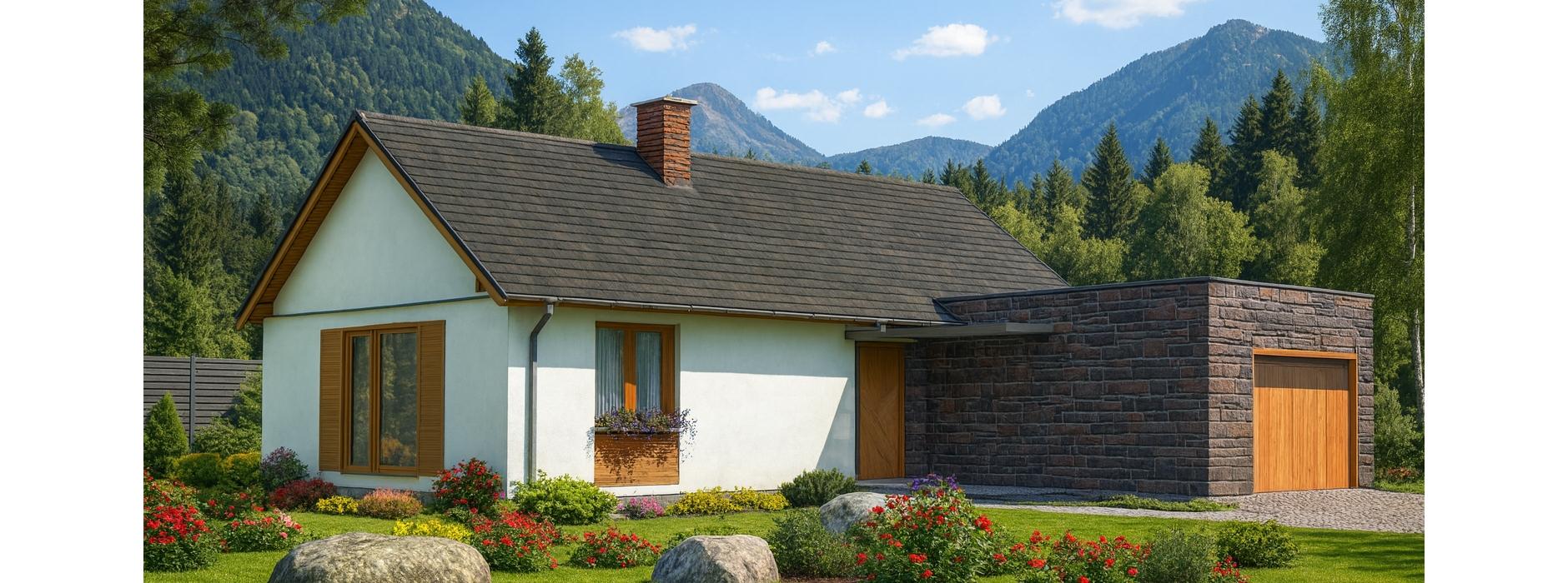 Ten parterowy dom z bala łączy nowoczesną, prostą bryłę z funkcjonalnym wnętrzem, które zostało zaprojektowane z myślą o komforcie mieszkańców. Budynek wyraźnie rozdziela strefę dzienną od nocnej, co zwiększa wygodę codziennego użytkowania i podkreśla ergonomiczny układ przestrzeni. Strefa dzienna W części dziennej domownicy mają do dyspozycji: Przestronny pokój dzienny, w którym znajduje się miejsce na duży komplet wypoczynkowy i stół jadalny, Wydzieloną kuchnię ze spiżarką, zapewniającą praktyczne miejsce do przechowywania produktów, Kominek, który ogrzewa pomieszczenie w chłodne dni, Szerokie przeszklenia i wyjście na taras, które wizualnie powiększają przestrzeń i zapewniają kontakt z otoczeniem. Strefa nocna Przez hol prowadzi droga do części nocnej domu, w której zaplanowano: Trzy wygodne sypialnie, Łazienkę, Wszystkie pomieszczenia wyposażono w duże okna, które wpuszczają dużo naturalnego światła. Dodatkowe udogodnienia Duży garaż połączony z częścią mieszkalną poprzez pomieszczenie gospodarcze/kotłownię, Dom z bala zapewnia naturalny mikroklimat, ciepło i przytulność wnętrza, Ekologiczne materiały konstrukcyjne sprawiają, że dom jest przyjazny dla zdrowia mieszkańców. Zalety technologii z bala Doskonała izolacja termiczna i akustyczna, Naturalne drewno tworzy przyjazny mikroklimat, Tradycja połączona z nowoczesnym designem, Wyjątkowy wygląd, który wyróżnia się na tle sąsiedztwa.