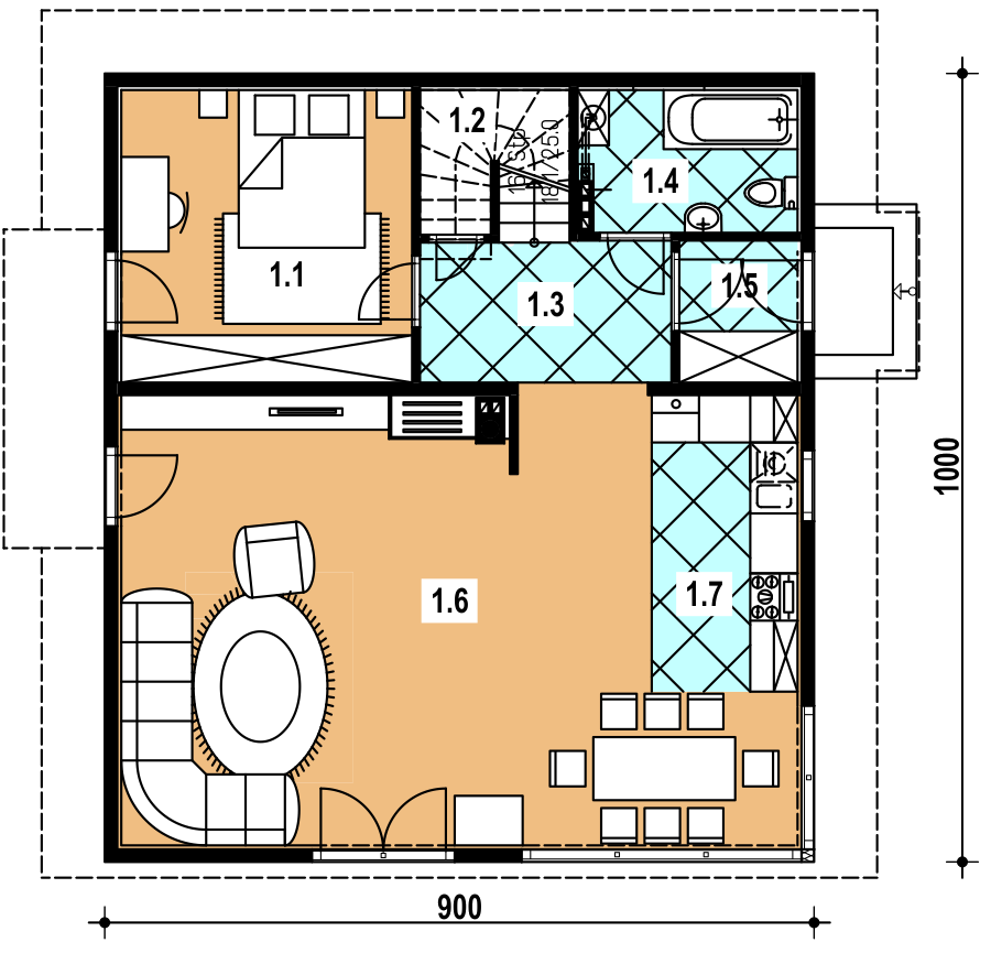 | 1.2 | pomieszczenie gospodarcze | 1.70 m2 | 1.70 m2 |