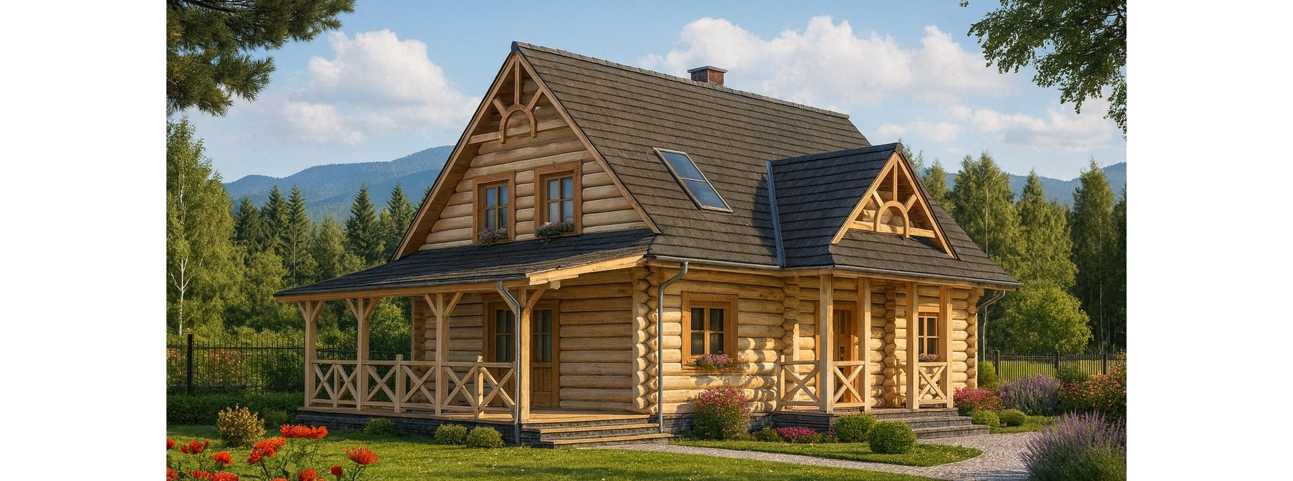 Projekt domu z bala inspirowanego architekturą górską to wyjątkowe połączenie tradycji z nowoczesnością. Charakterystyczna bryła budynku nawiązuje do regionalnego stylu, a jednocześnie została wzbogacona o elementy współczesne – duże przeszklenia, otwarty układ wnętrz i częściowo zadaszony taras, który pozwala cieszyć się ogrodem przez cały rok. Komfortowe wnętrza Wnętrze domu wyróżnia się niebanalnym i przestronnym układem. Parter to strefa dzienna, w której salon połączony z kuchnią i holem tworzy otwartą przestrzeń. Duże okna zapewniają maksymalną ilość naturalnego światła, a kominek nadaje wnętrzu przytulny klimat. Z salonu można wyjść na taras drewniany, częściowo zadaszony, idealny do odpoczynku niezależnie od pogody. Dodatkowo na parterze znajduje się sypialnia dla gości lub seniorów, łazienka i pomieszczenie gospodarcze. Na poddaszu przewidziano trzy wygodne sypialnie, łazienkę oraz niewielką garderobę. Wszystkie pomieszczenia łączy funkcjonalny hall. Atuty technologii z bala Dom wykonany w technologii z bala posiada unikalne właściwości: naturalne drewno zapewnia zdrowy i przyjazny mikroklimat, budynek jest ciepły zimą i chłodny latem, drewniana elewacja i konstrukcja podkreślają charakter górskiego domu, niepowtarzalna estetyka i trwałość konstrukcji sprawiają, że dom wyróżnia się na tle innych inwestycji. Ten dom z bala z poddaszem i tarasem to doskonały wybór zarówno jako całoroczny dom rodzinny, jak i stylowy dom letniskowy. Łączy w sobie piękno tradycji i wygodę nowoczesnych rozwiązań.