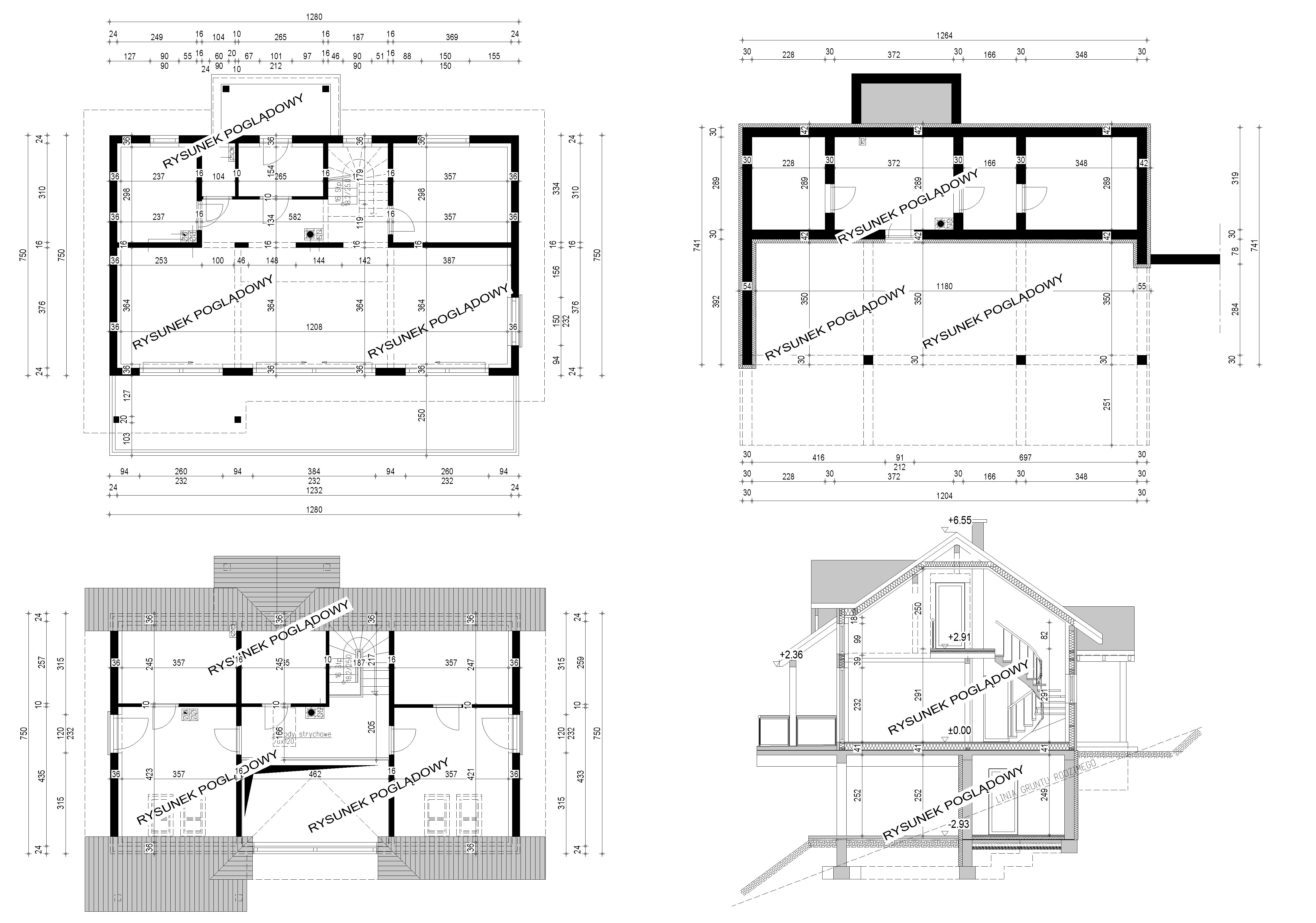 Projekt dopuszcza ściany grubości 12, 20, 24, 30 cm ocieplone