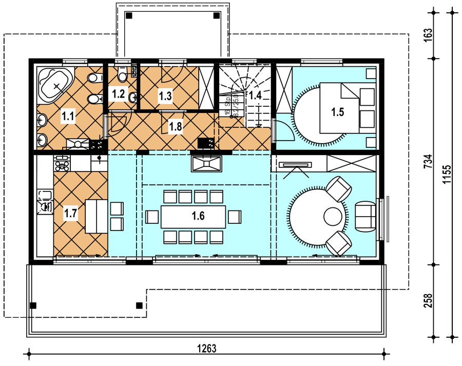 | 1.6 | pokój dzienny | 34.80 m2 | 34.80 m2 |