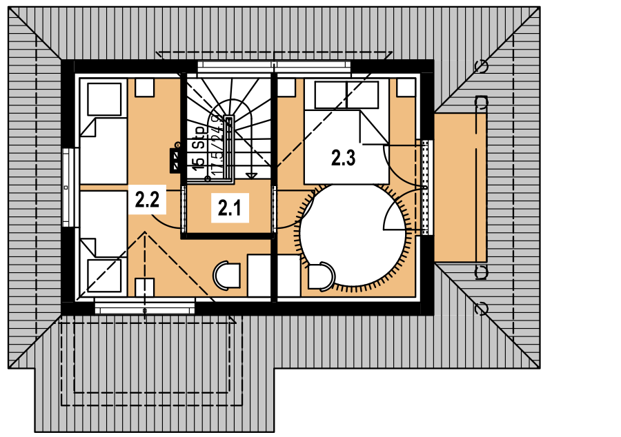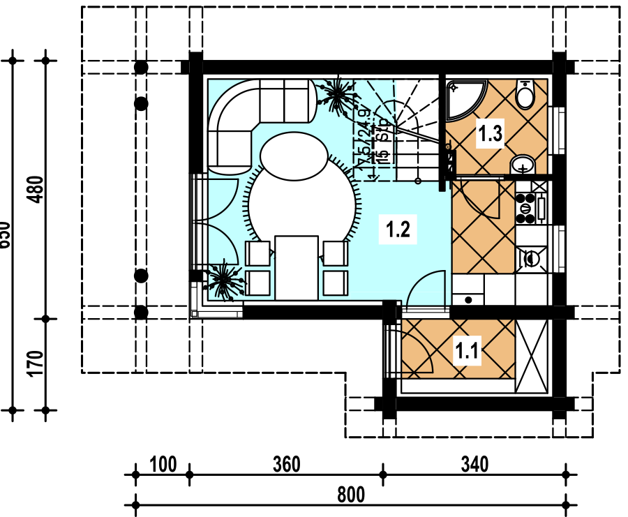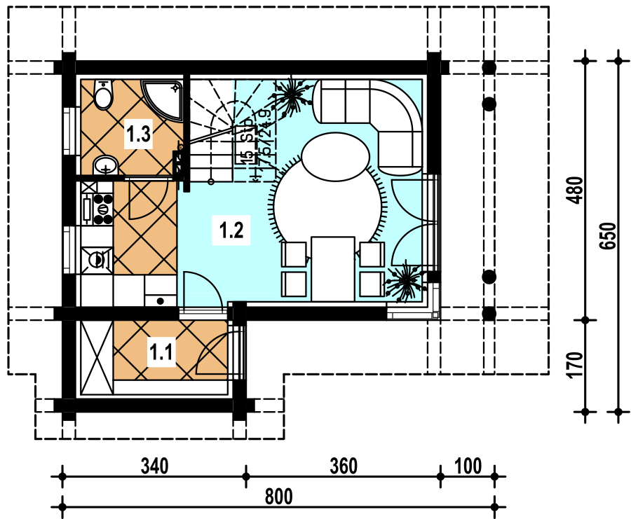 1.2 | pokoj dzienny z aneksem kuchennym | 21.00 m2 | 21.00 m2 |