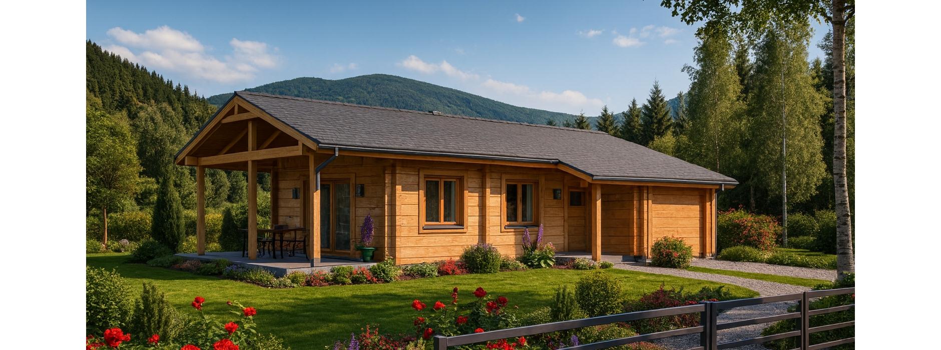 Projekt domu z bala to propozycja dla osób poszukujących tradycyjnego, drewnianego budownictwa o wyjątkowym klimacie. Budynek został zaprojektowany jako wolnostojący, parterowy, niepodpiwniczony, z dachem dwuspadowym o nachyleniu połaci 20°. Dzięki zastosowaniu naturalnych bali konstrukcja domu wyróżnia się ponadczasową estetyką, doskonałą izolacyjnością cieplną oraz niepowtarzalnym mikroklimatem wnętrz. Na parterze zaplanowano wygodny i funkcjonalny układ pomieszczeń. Wiatrołap prowadzi do hallu – głównej osi komunikacyjnej domu, z której dostępne są: kuchnia, przestronny pokój dzienny z kominkiem i wyjściem na taras, przytulna sypialnia, praktyczna łazienka. Salon z kominkiem oraz taras tworzą idealne miejsce do spędzania czasu z rodziną i przyjaciółmi, a naturalne drewno podkreśla przytulny, ciepły charakter wnętrza. Integralną częścią projektu jest garaż jednostanowiskowy, do którego można wejść bezpośrednio z wiatrołapu. To praktyczne rozwiązanie zapewnia wygodę i chroni przed niekorzystnymi warunkami pogodowymi. Dom z bala to inwestycja dla osób ceniących naturalne materiały, zdrowy mikroklimat i trwałość tradycyjnego budownictwa drewnianego. Sprawdzi się zarówno jako całoroczny dom rodzinny, jak i wyjątkowy dom letniskowy. W projekcie przewidziano także garaż dostępny bezpośrednio z wiatrołapu, co zwiększa komfort codziennego użytkowania domu.