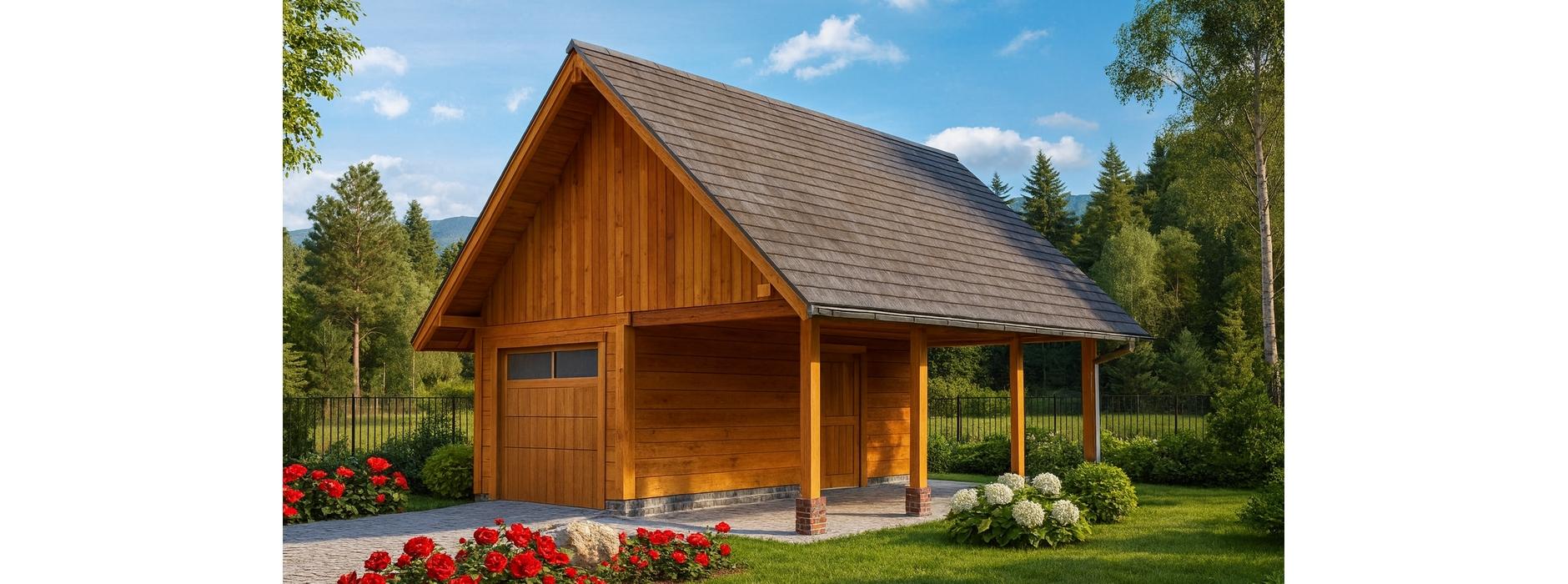 Projekt garażu z bali G-4 "GARAŻ Z WIATĄ"