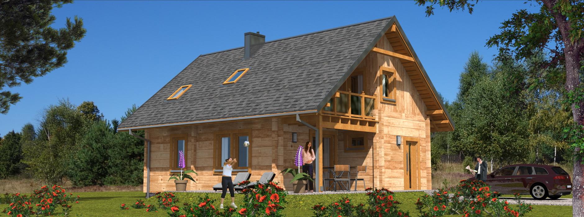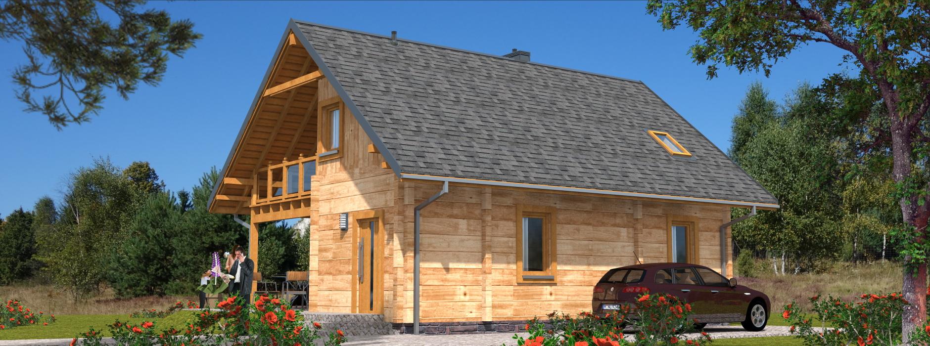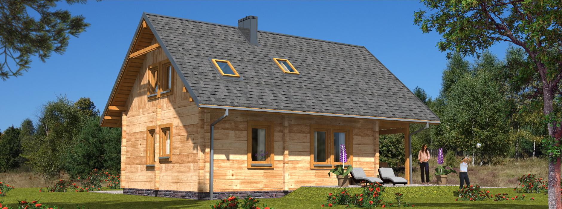Ściany zewnętrzne: z bali drewnianych gr. 16 plus ocieplenie 12 cm.