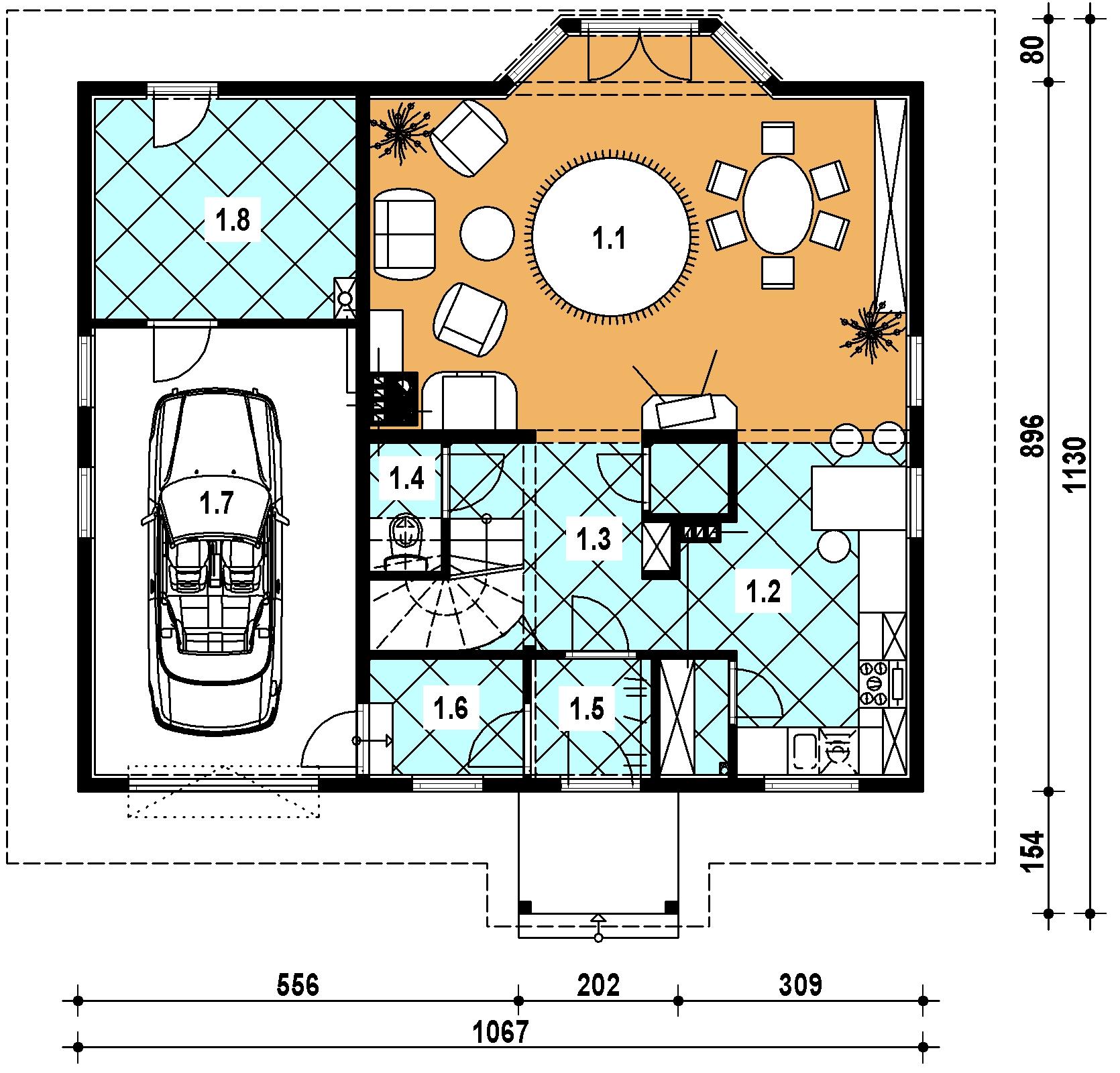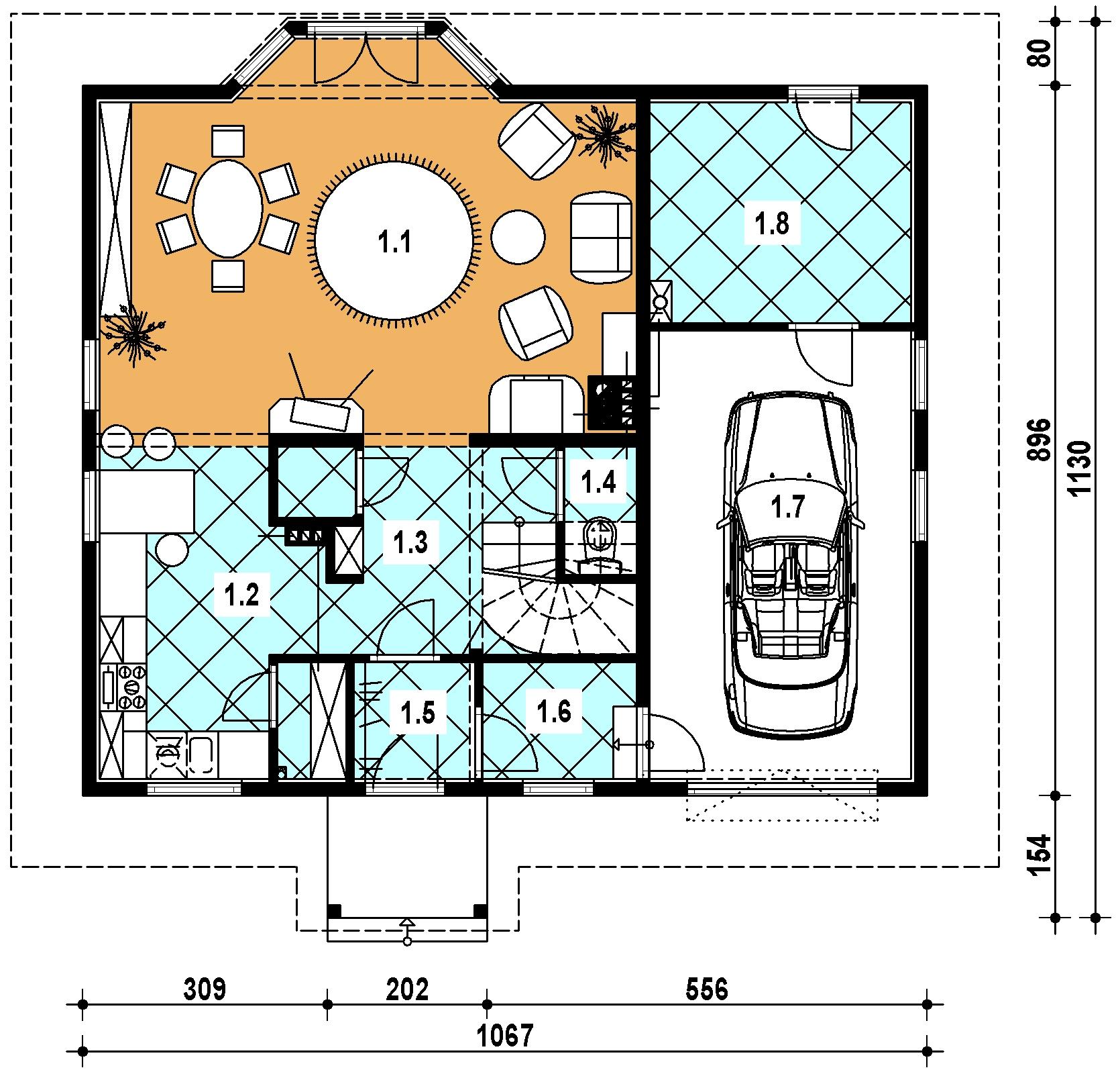 | 1.1 | pokój dzienny | 30.00 m2 | 30.00 m2 |