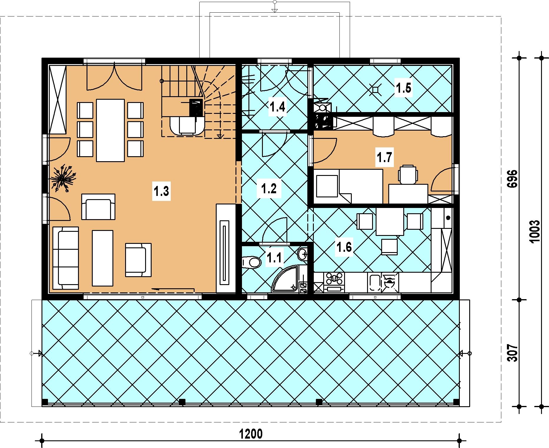 | 1.2 | hall | 6.00 m2 | 6.00 m2 |