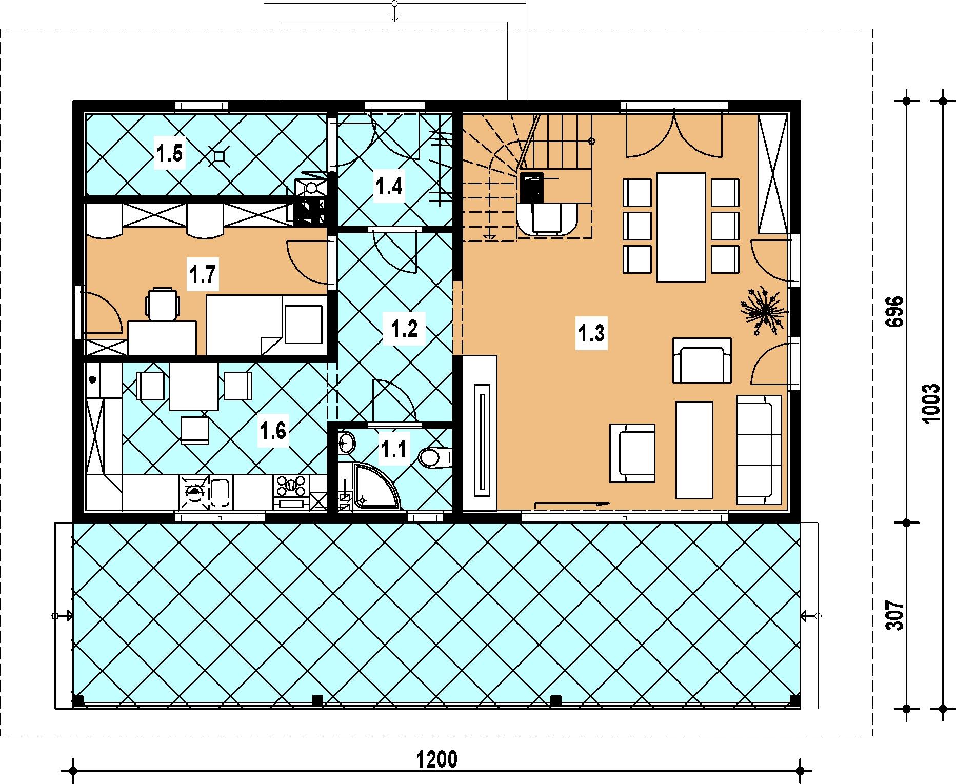 | 1.3 | pokój dzienny | 32.50 m2 | 32.50 m2 |