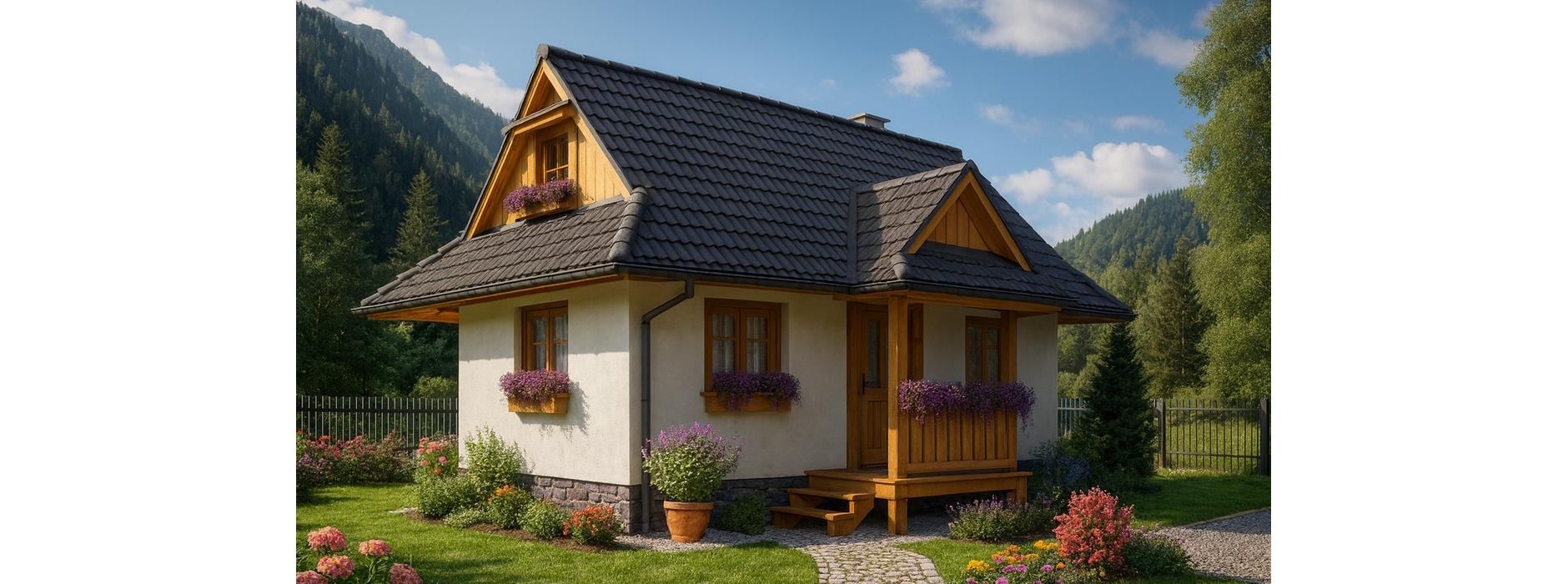 budynek letniskowy parterowy z podddaszem sypialnym lub wersja jako budynek gospodarczy